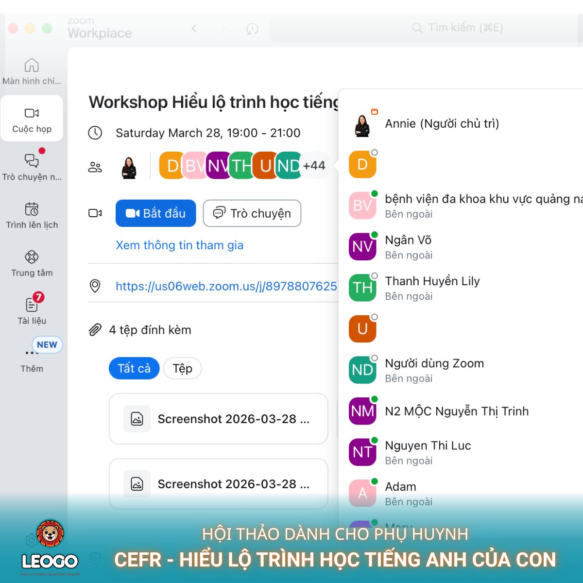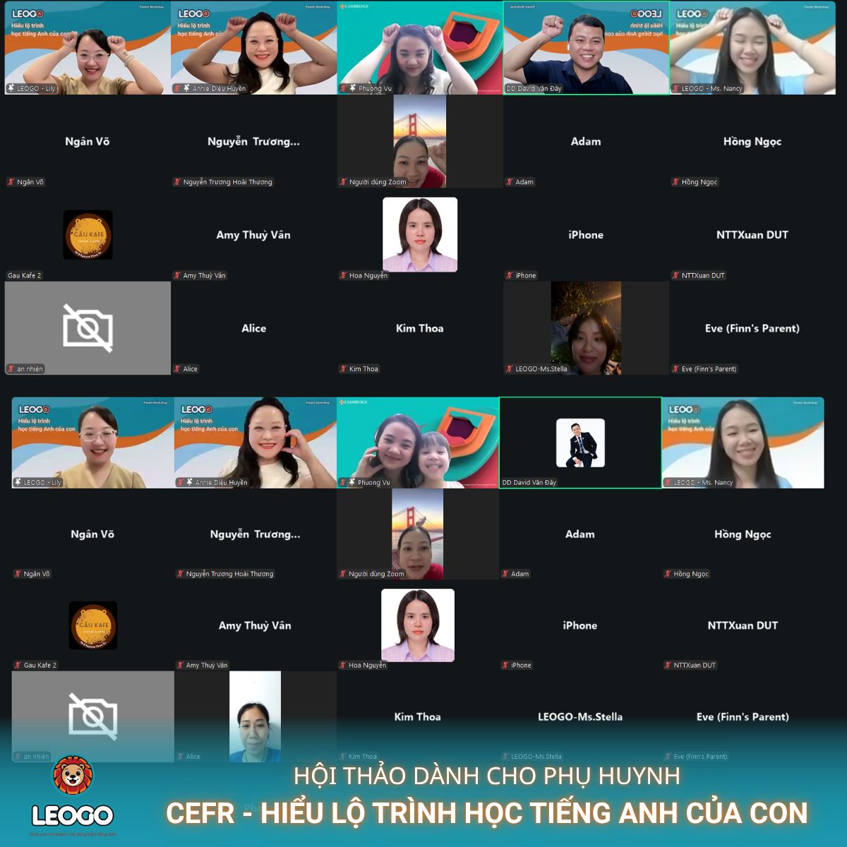 Tối ngày 27/3/2026 vừa qua, Hệ thống Anh ngữ LEOGO đã tổ chức thành công buổi hội thảo trực tuyến dành cho phụ huynh với chủ đề: “CEFR – Hiểu lộ trình học tiếng Anh của con”. Sự kiện đã thu hút sự tham gia nhiệt tình của hơn 50 phụ huynh tại Đà Nẵng, tạo nên một không gian kết nối giáo dục đầy ý nghĩa.