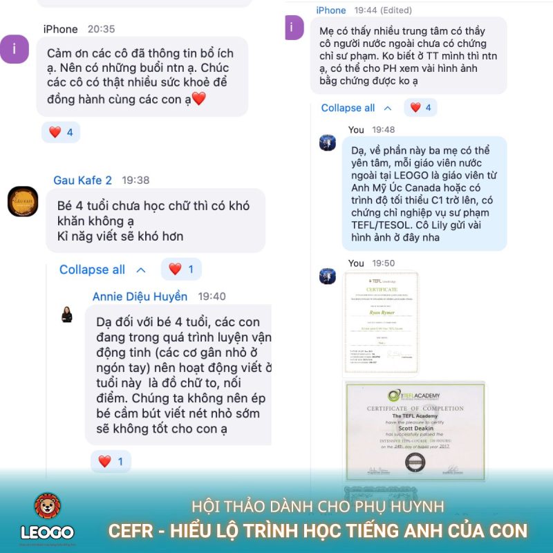 Sau chương trình, LEOGO đã nhận được rất nhiều phản hồi tích cực. Đa số phụ huynh cho rằng buổi hội thảo đã giúp họ tháo gỡ được những lo lắng bấy lâu nay. Việc hiểu lộ trình học tiếng Anh của con từ mầm non, tiểu học đến THCS chính là nền tảng để ba mẹ đồng hành cùng con một cách bền vững và hiệu quả nhất.