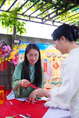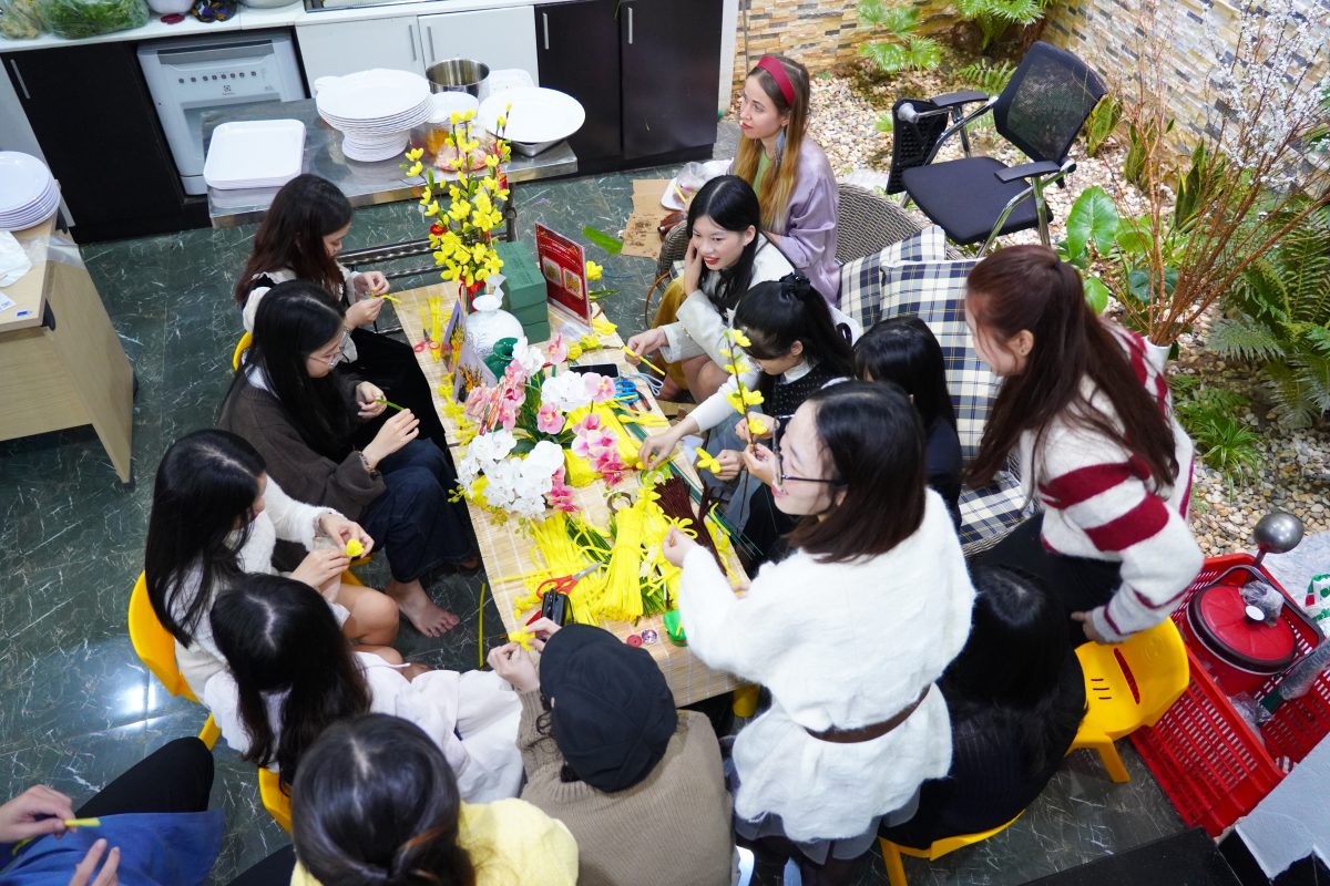 Chơi ô ăn quan & làm bánh phục linh: Tiếng cười giòn giã vang lên bên những bàn cờ ô ăn quan, những đôi bàn tay thường ngày cầm phấn nay lại tỉ mỉ ép khuôn từng chiếc bánh phục linh thơm nức. Những hoạt động này giúp gắn kết đội ngũ giáo viên bản ngữ và giáo viên Việt Nam, giúp họ hiểu thêm về nét đẹp văn hóa Tết cổ truyền.