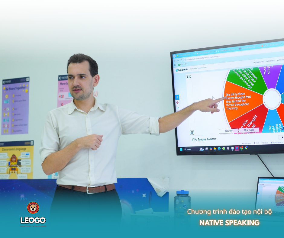 Đặc điểm độc đáo trong buổi đào tạo của thầy Zach Marshall chính là việc lồng ghép tư duy tích cực về ngôn ngữ. LEOGO yêu cầu giáo viên không chỉ luyện phát âm chuẩn mà còn phải luyện tập chủ động thông qua việc quay video bài nói hằng ngày.